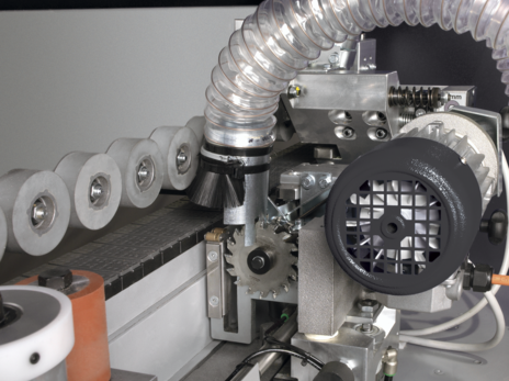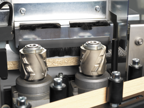 Două freze cu diamant, controlabile, asigură o prelucrare perfectă a cantului panoului înainte de lipire, eliminând orice așchiere.