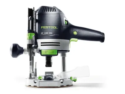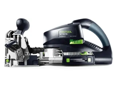 Set scule tâmplărie Festool: mașina de îmbinat Domino XL DF 700, freza superioară OF 1400, circularul staționar Kapex KS 120 și circularul manual HK, pe fundal alb.