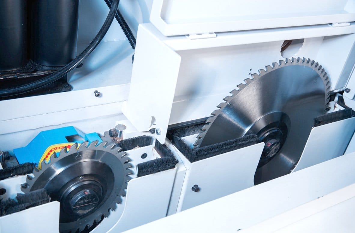 - Aliniere Perfectă: Utilajul dispune de un Aliniator Lateral Dublu de Precizie, cu role duble (față/spate) și o cursă automată de 2500 mm. Acesta garantează ecarisarea perfectă, permițând prelucrarea pieselor foarte înguste (minim 45 x 34 mm).