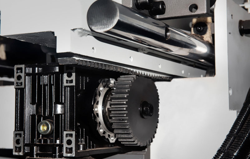 Sistemul de avans al carului este proiectat pentru fluiditate și viteză. Acesta utilizează un servo-motor cu pinion și cremalieră, o soluție care asigură o mișcare extrem de lină și elimină vibrațiile periculoase care ar putea afecta marginea tăiată.