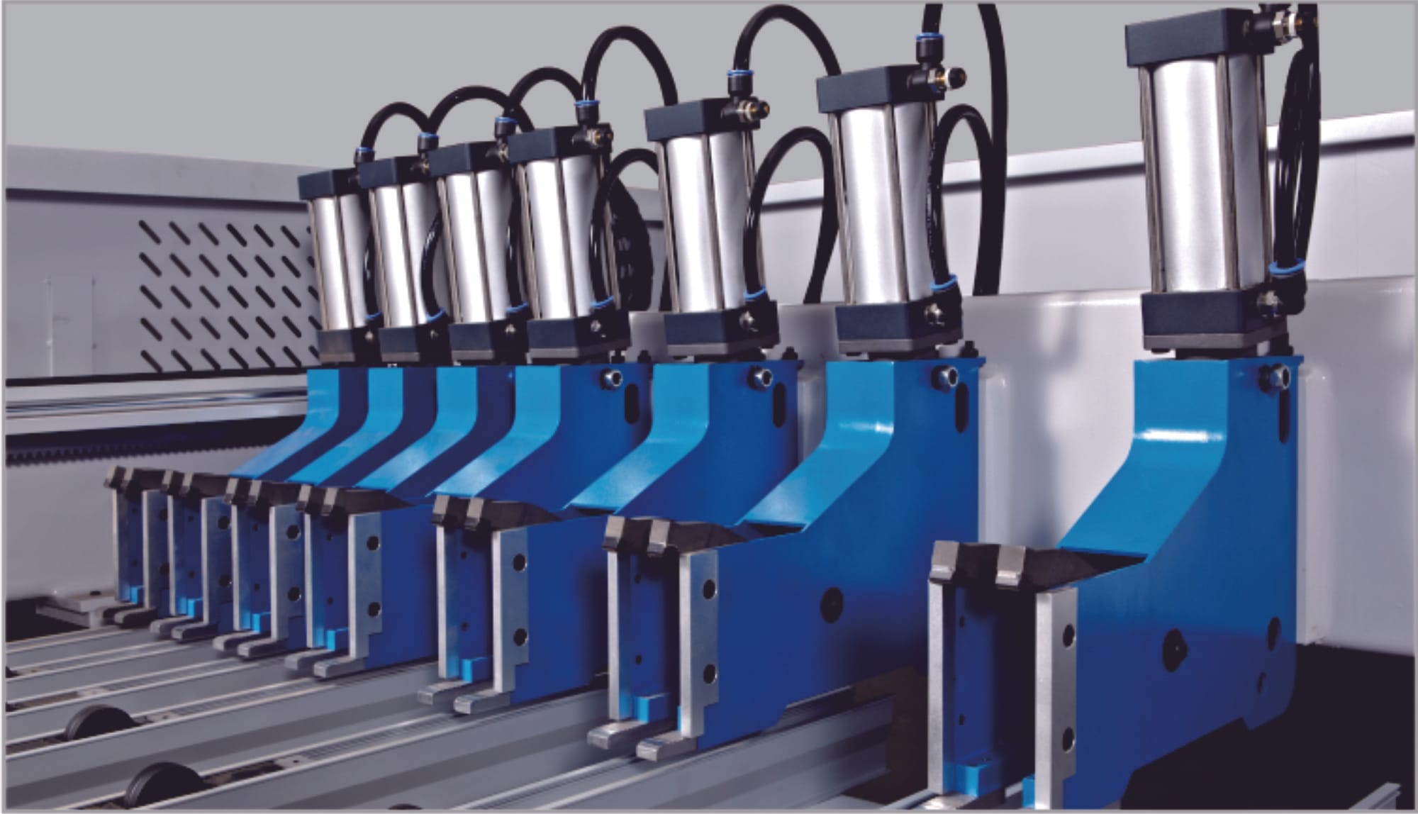 Carul de mare viteză este echipat cu 10 cleme pneumatice. Acestea utilizează un design special cu "deget dublu" (double finger), conceput pentru producția de volum mare, asigurând o priză fermă și stabilă a pachetelor multiple de panouri.