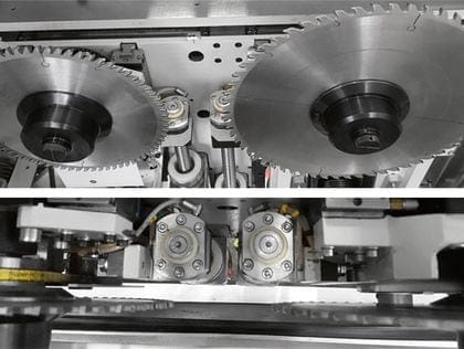 Utilajul este conceput pentru operare continuă. Sistemul de lubrifiere centralizată, verificat de unitatea de control, garantează o lipsă totală de întreținere a componentelor cheie. În plus, dispozitivul "Saw-set" facilitează un reglaj electronic rapid și precis al sculelor (pânză principală și incizor) în doar câteva secunde, sporind productivitatea prin reducerea timpilor de configurare.